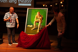 Column door Joyce Roodnat over de onthulling van mijn portret van Gerardjan Rijnders in de Stadsschouwburg Amsterdam, gepubliceerd in beide NRC's op donderdag 17 mei 2018.